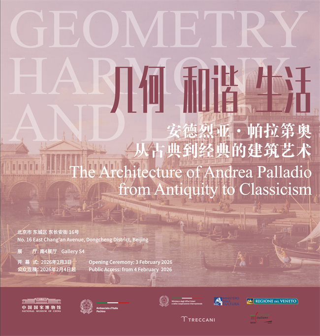 The exhibition Geometry, Harmony and Life: The Architecture of Andrea Palladio from Antiquity to Classicism officially opened at the National Museum of China on February 3, 2026. Organized by the National Museum of China and the Embassy of Italy in China, and curated by the Institute of the Italian Encyclopedia Treccani, the exhibition is located in gallery S4 and opened to the public on February 4.